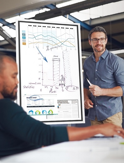 La imagen detallada y de alto contraste del Samsung Flip 2 ofrece exactamente la calidad de imagen ideal para entornos de trabajo profesionales. Ya sean tablas, gráficos o vídeos, todo el contenido se muestra en alta resolución y con colores perfectamente equilibrados.